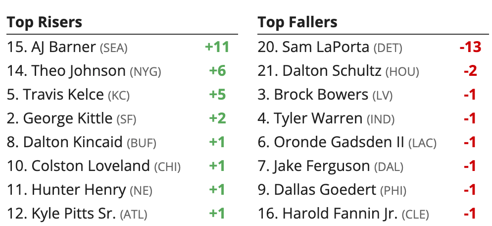 2025 Rest of Season Fantasy Football Rankings – TE Risers & Fallers Week 12 – Updated Wednesday