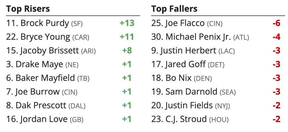 2025 Rest of Season Fantasy Football Rankings – QB Risers & Fallers Week 12 – Updated Wednesday