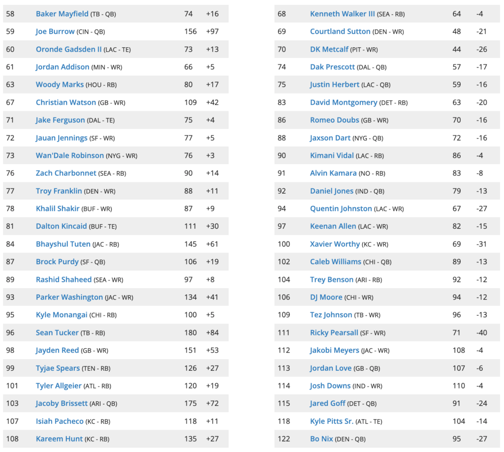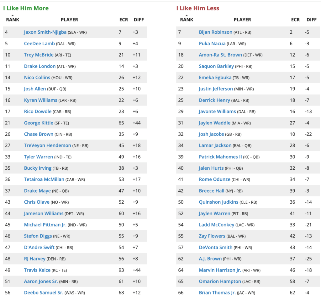 2025 Rest of Season Rankings Fantasy Football – Overall Higher and Lower (Week 12 Update)