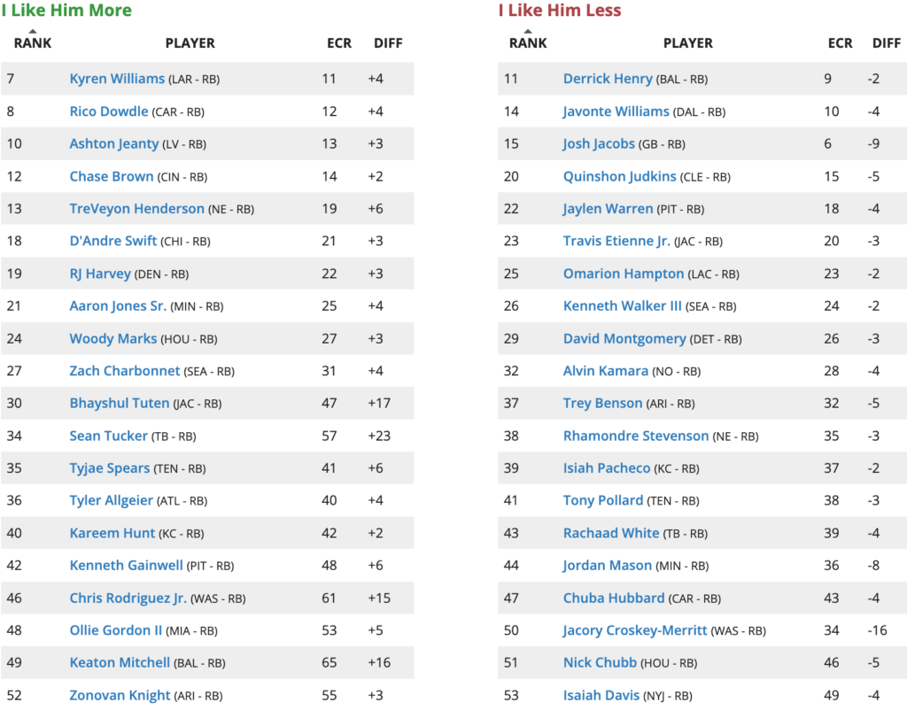 2025 Rest of Season Rankings Fantasy Football – RB Higher and Lower (Week 12 Update)