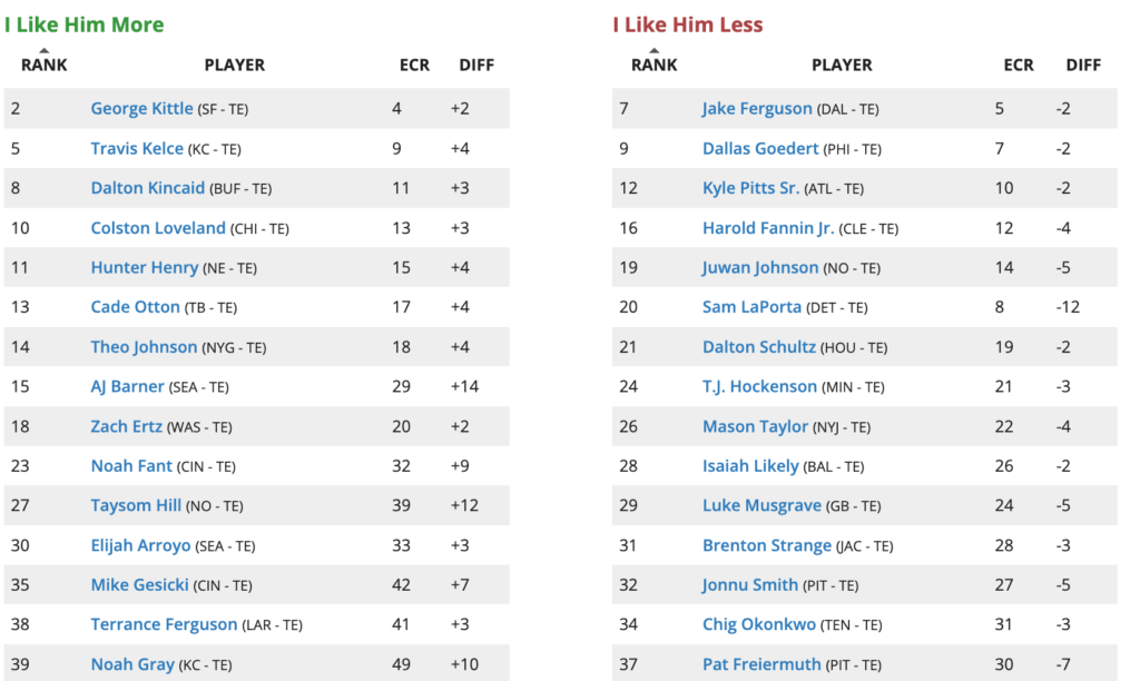 2025 Rest of Season TE Rankings Higher & Lower (Week 12 Update)