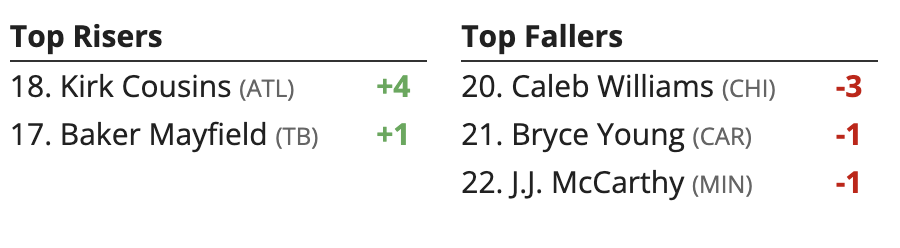 Meanwhile, Kyle Pitts takes a hit, but I doubt they can put that genie back in the bottle after a 40 FP outing. Kirk Cousins also becomes an even more intriguing Week 16 QB Streamer and jumps up 4 spots in my rankings