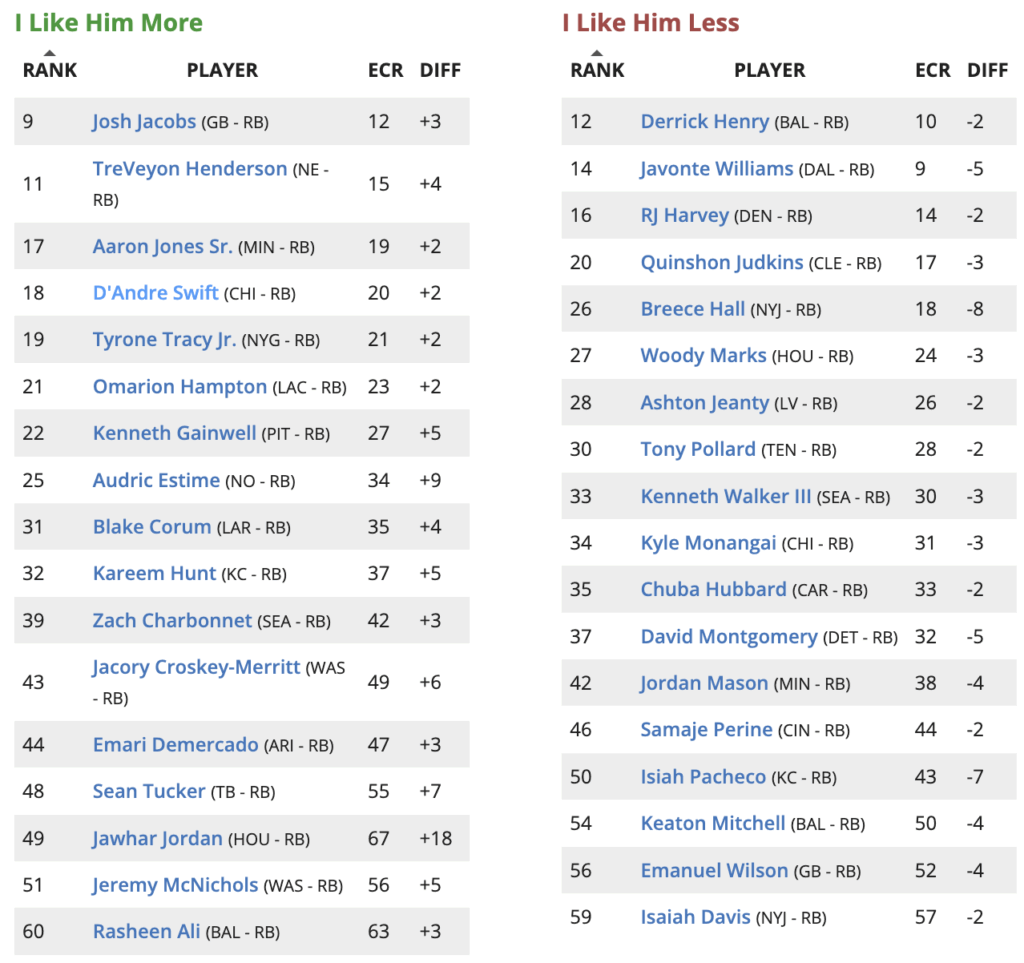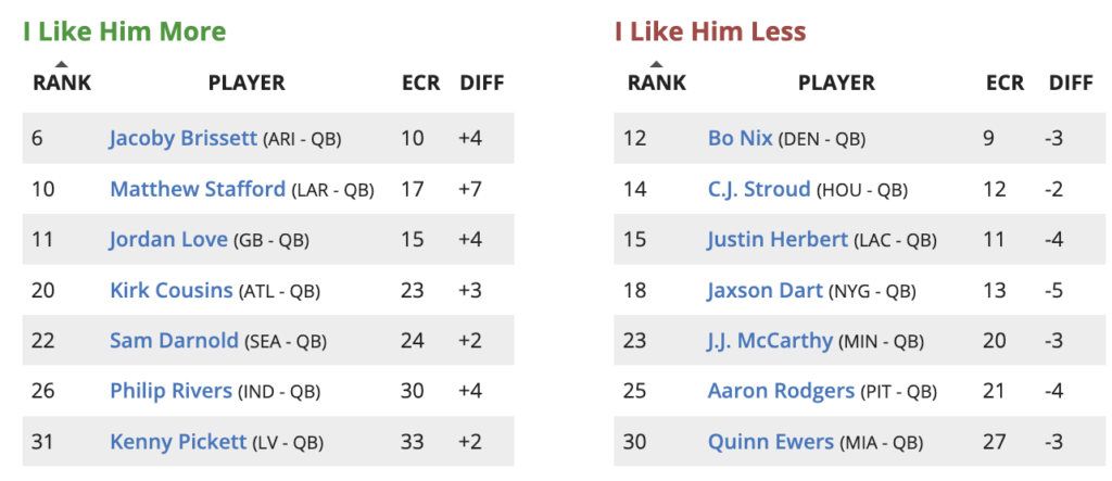 Here are the players I am higher or lower on in my fifth draft of Week 16 Fantasy Football Rankings – Updated Sunday, 12/21