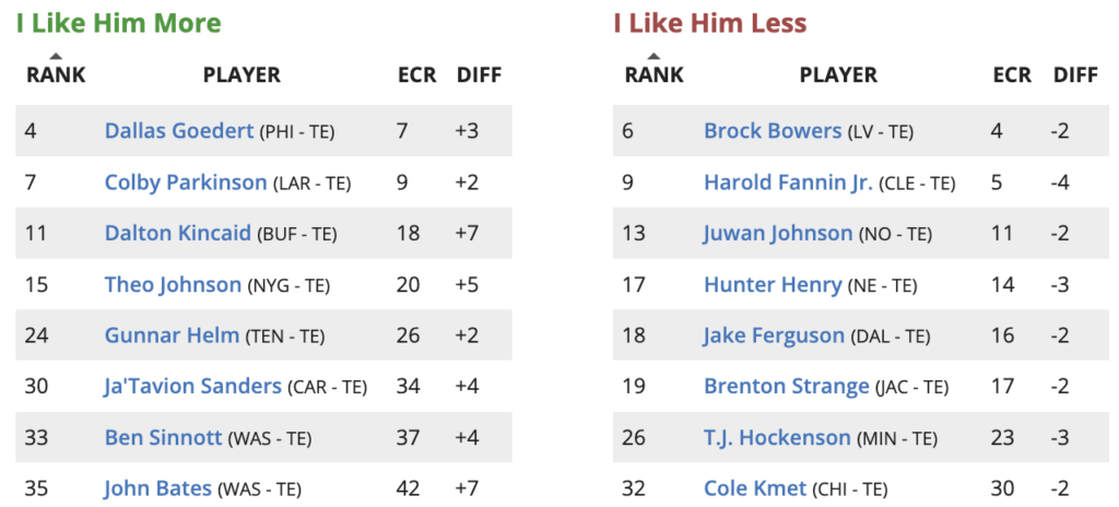 Updated Week 16 Tight End (TE) Rankings Higher and Lower