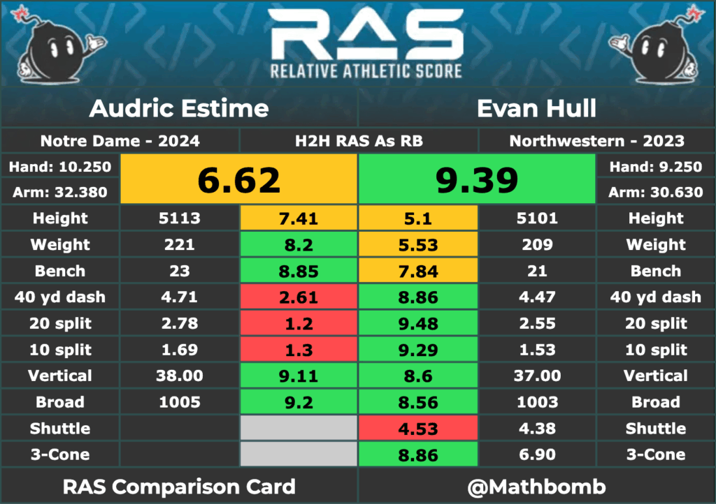 Of the duo, Hull is also the much better athlete as well. Per Relative Athletic Score: