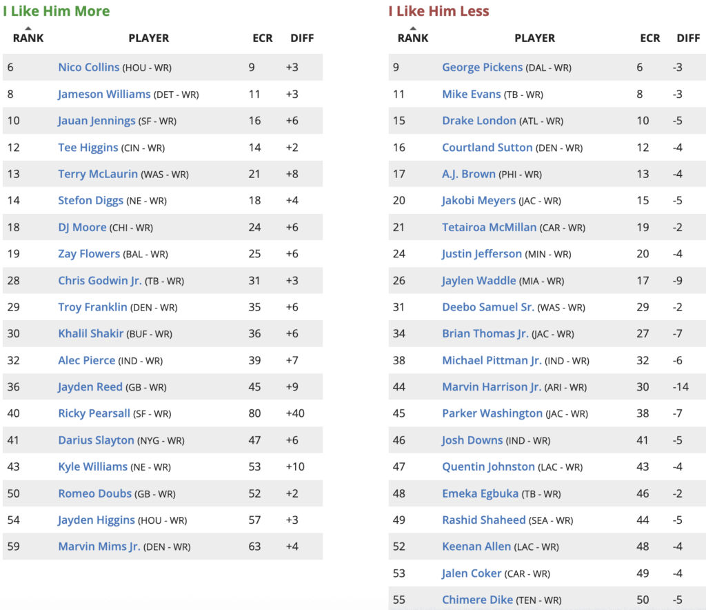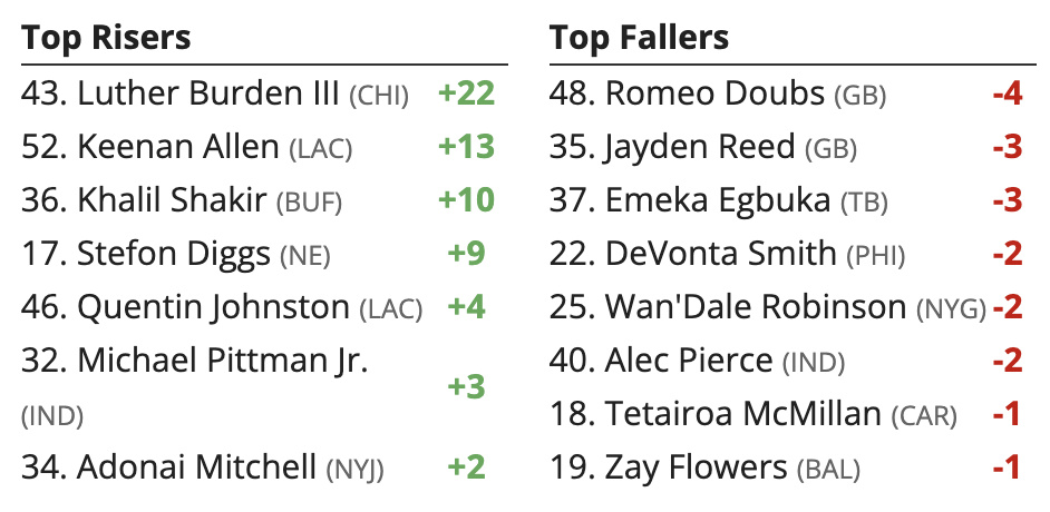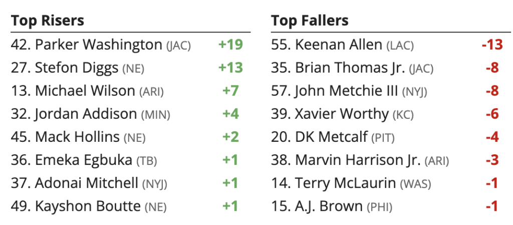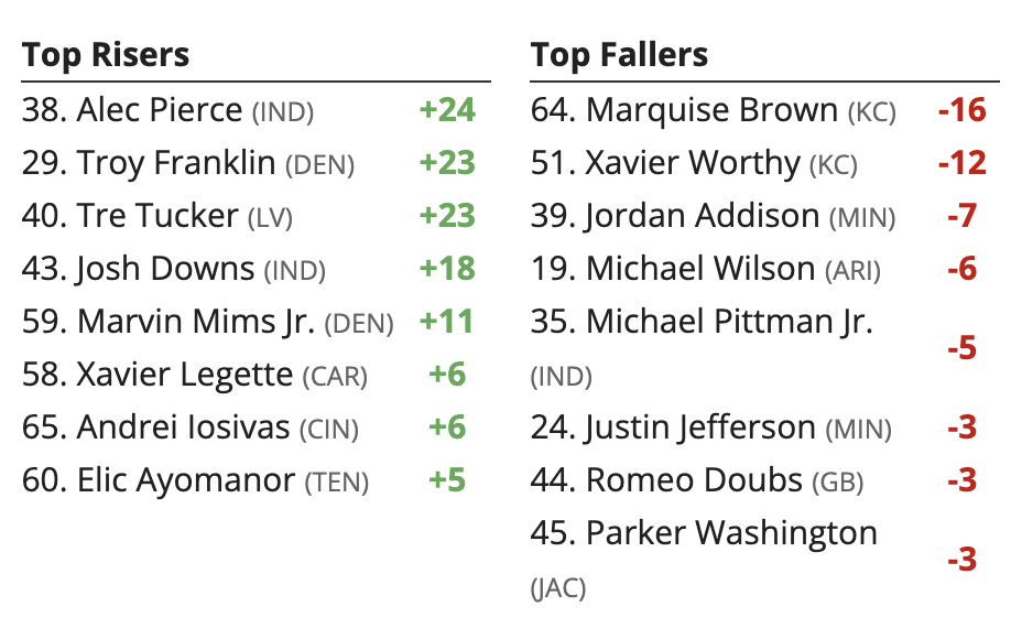 –Marvin Harrison is expected to play but his “snaps will be managed” according to Adam Schefter. This makes me a bit more bullish on Michael Wilson, while Harrison is completely unplayable.