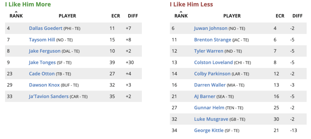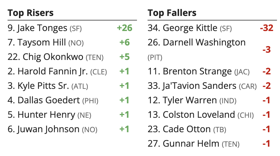 Updated Week 17 Tight End (TE) Rankings Higher and Lower