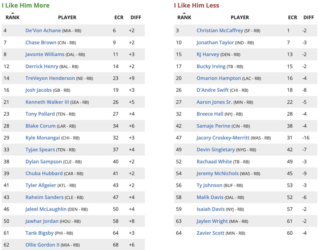 Note – I didn’t get Chris Rodriguez OUT updated in my rankings, my apologies on Jacory Croskey-Merritt being so low