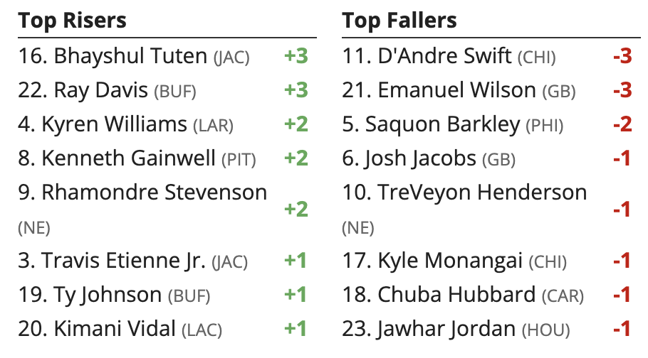 Updated Week 19 Wild Card Weekend Fantasy Football RB Rankings: Higher and Lower (Friday, 1/10/25)