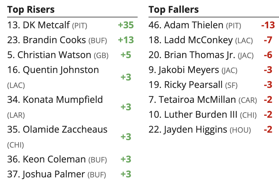 Updated Week 19 Wild Card Weekend Fantasy Football WR Rankings: Higher and Lower (Friday, 1/10/25)