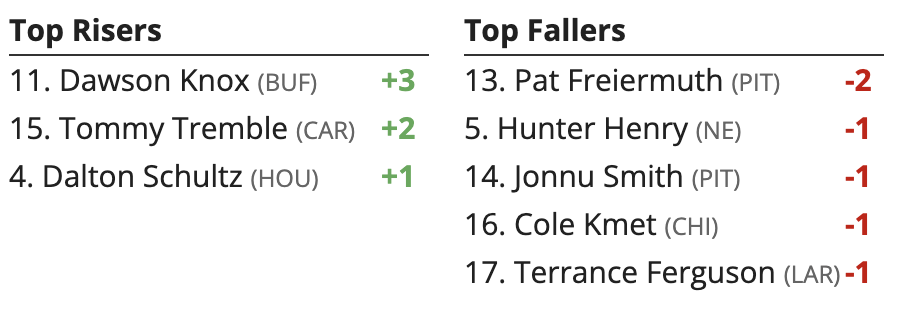 Updated Week 19 Wild Card Weekend Fantasy Football TE Rankings: Higher and Lower (Friday, 1/10/25)