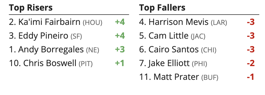 Updated Week 19 Wild Card Weekend Fantasy Football K Rankings: Higher and Lower (Friday, 1/10/25)