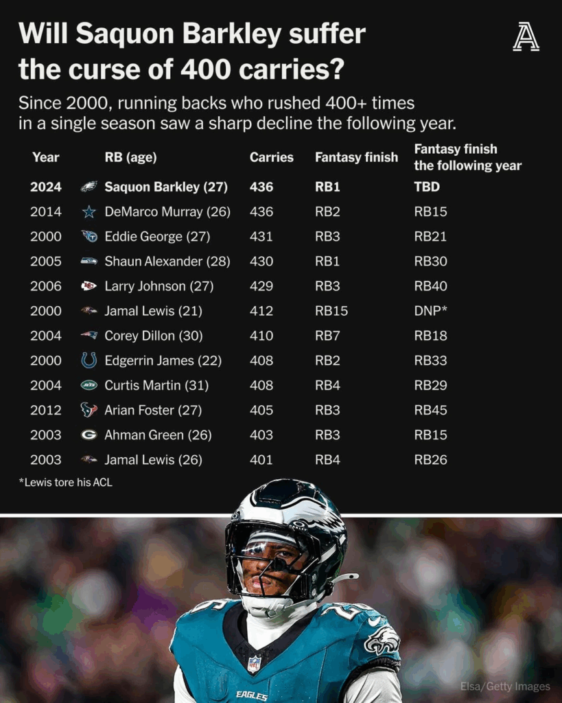 He has also greatly benefited from playing with Tua, which may be a blessing or curse entering 2026. Over the last two seasons, Achane has played 25 games with Tua compared to 8 without him.