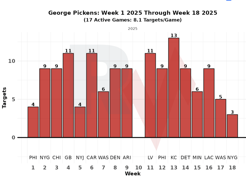 - Week 11: Lamb 17.6 FPs & 7 targets, Pickens 29.4 FPs & 11 targets