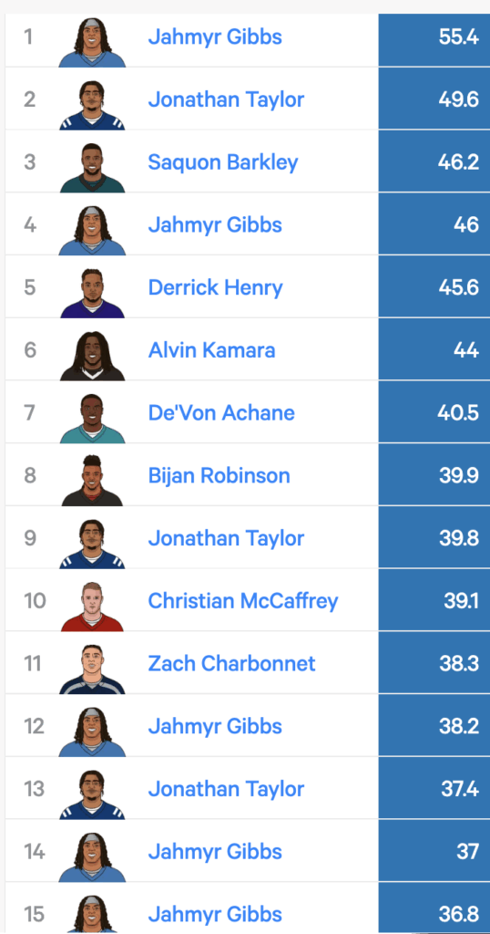 Still, it’s nice when the stats back that up, and Bijan’s efficiency was off the charts last season. Per FantasyPoints’ Data Suite, Robinson ranked: