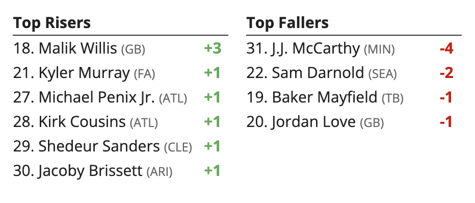 Updated 2026 Fantasy Football Rankings Risers and Fallers – Quarterbacks