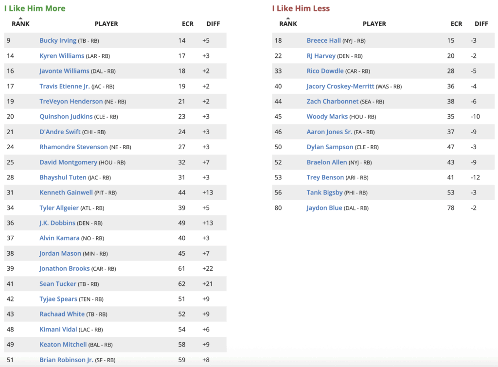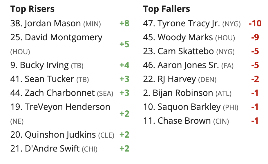 Updated 2026 Fantasy Football Rankings Risers and Fallers – Running Backs