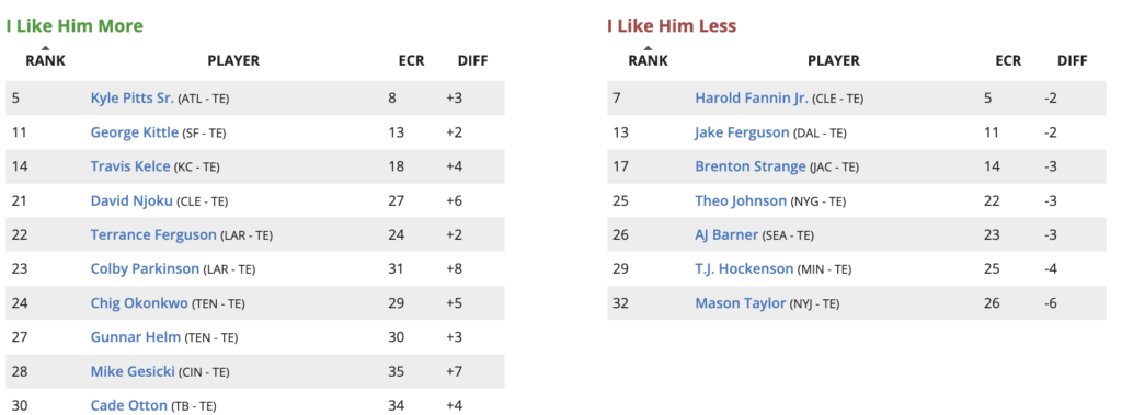 Updated Week 2026 Fantasy Football Tight End (TE) Rankings Higher and Lower