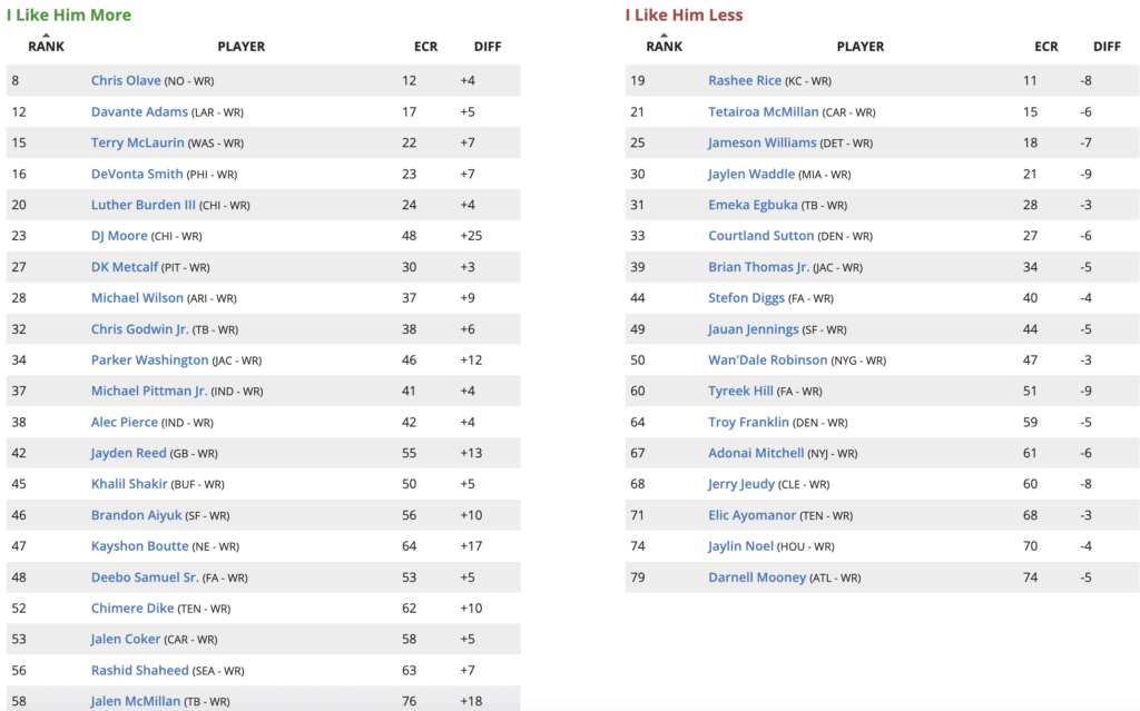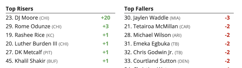 Updated 2026 Fantasy Football Rankings Risers and Fallers – Wide Receivers