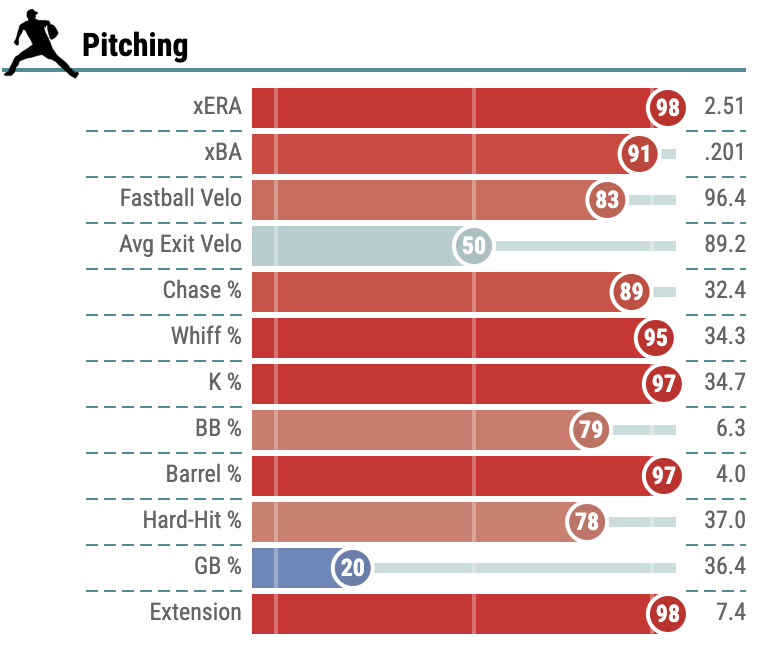 Closer newcomer Cade Smith may be the most slept on reliever in MLB. In his first two years in the bigs, Smith has posted a sub 2.00 FIP (Fielding Independent Pitching) across his 149 total innings, and posts elite strikeout and walk rates. His Baseball Savant profile screams elite almost entirely across the board. Don’t be surprised if Smith ranks as the #1 2026 fantasy baseball closer at season’s end.