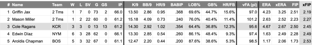 Newly signed Griffin Jax had the best xFIP (Expected Fielding Independent Pitching) amongst pitchers with at least 60 innings pitched in 2025. If Jax’s main competition for the job, Edwin Uceta, misses significant time with a shoulder injury, Jax could skyrocket up this list and firmly into the top 10, if not higher.