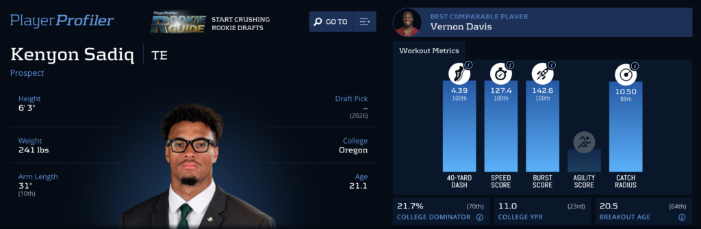 Kenyon Sadiq and Eli Stowers headline an intriguing tight end class that has more fantasy-relevant depth than many managers realize. Both bring legitimate pass-catching ability and the athleticism to contribute early in their NFL careers, making them worthwhile targets in the first few rounds of rookie drafts.