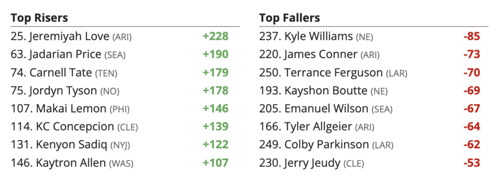 2026 Fantasy Football Rankings Risers and Fallers – Overall – 4/26 Update