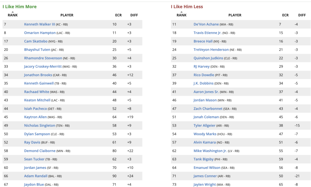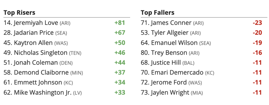 Updated 2026 Fantasy Football Rankings Risers and Fallers – Running Backs