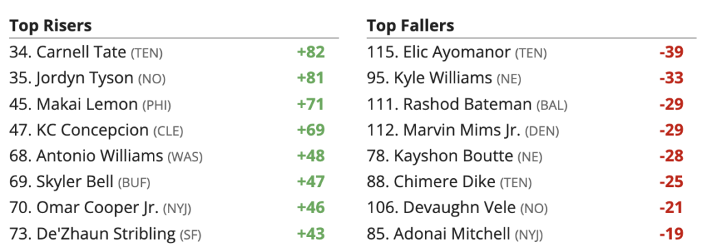 Updated 2026 Fantasy Football Rankings Risers and Fallers – Wide Receivers