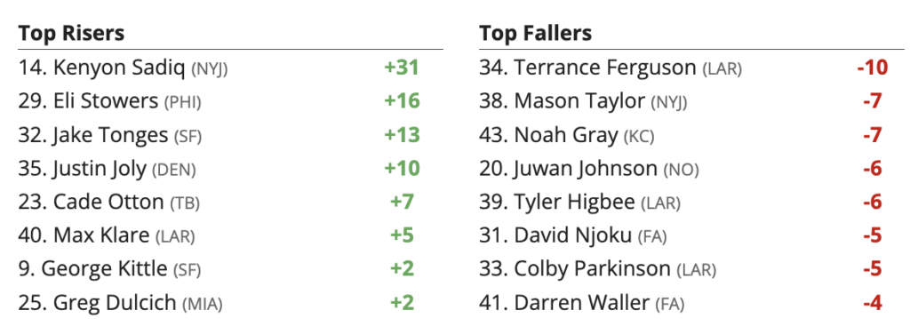 Updated 2026 Fantasy Football Rankings Risers and Fallers – Tight Ends