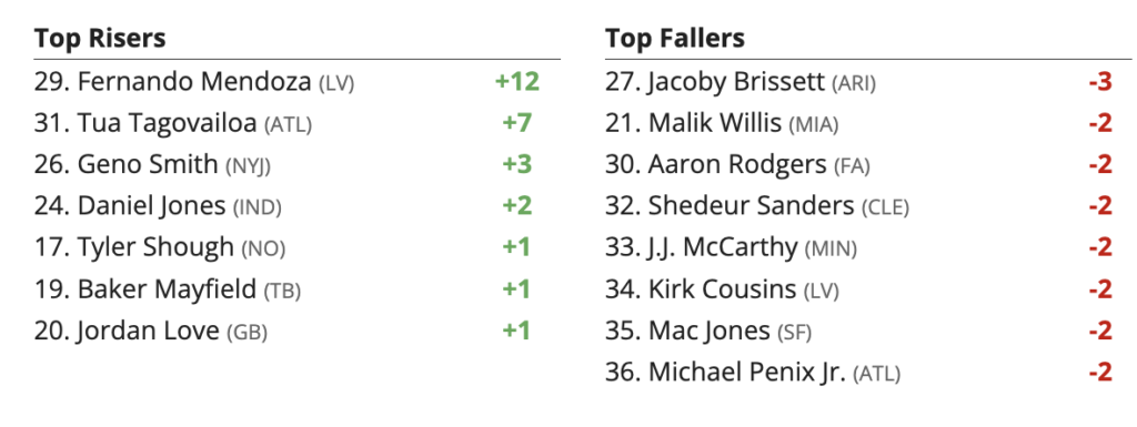 Updated 2026 Fantasy Football Rankings Risers and Fallers – Quarterbacks