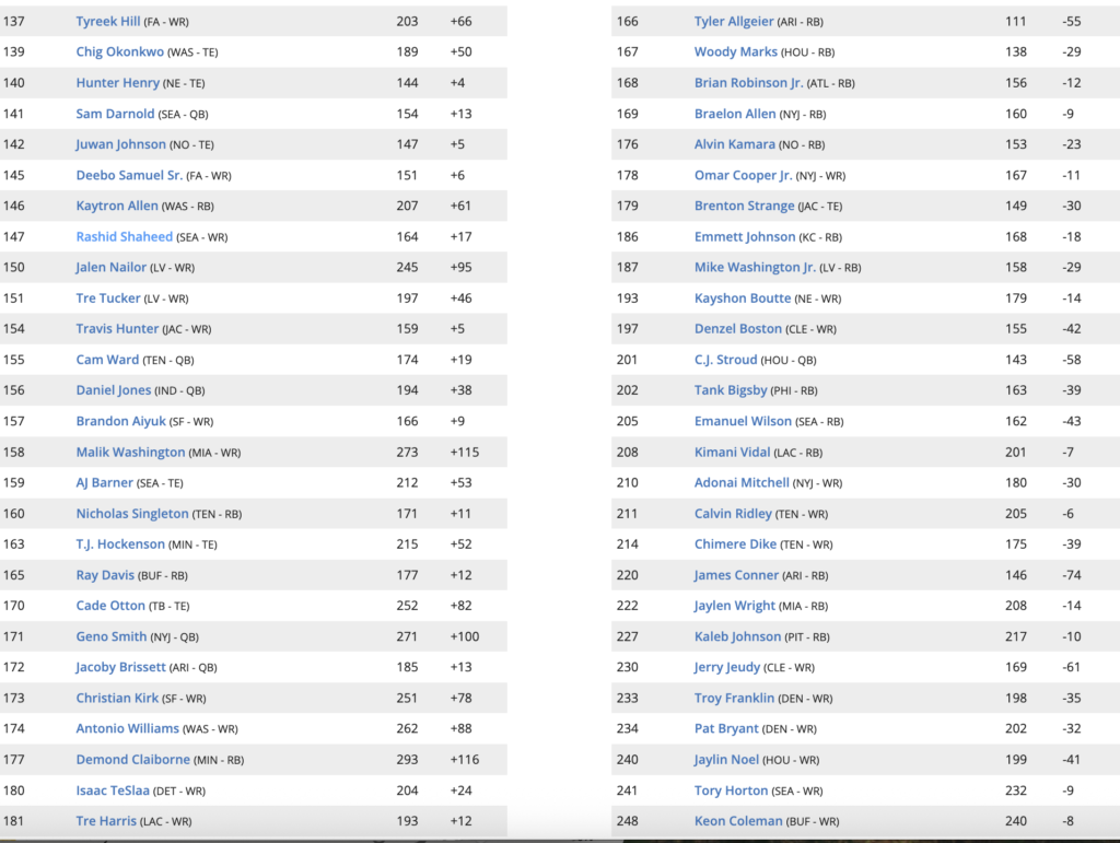Note: this constant “Stock Market” approach to my 2026 Fantasy Football Rankings has been wildly helpful in the past. I finished No.6 in FantasyPros’ 2024 Draft Accuracy competition, and No.2 in their Multiyear Draft Accuracy (2022-2024)!