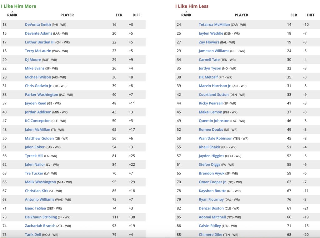 Updated 2026 Fantasy Football Wide Receiver (WR) Rankings Higher and Lower