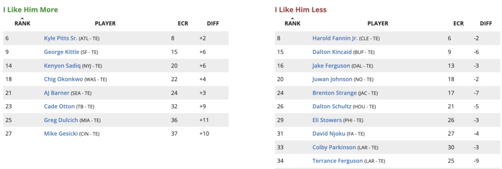 Updated Week 2026 Fantasy Football Tight End (TE) Rankings Higher and Lower