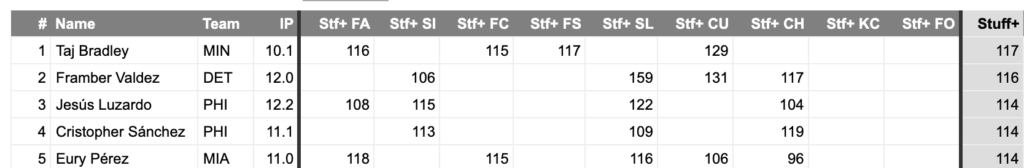 The 25 year old Bradley currently leads the Majors in Stuff+ (through just 2 starts, I know!), and has struck out 12 over 10.1IP, allowing just 1 run.