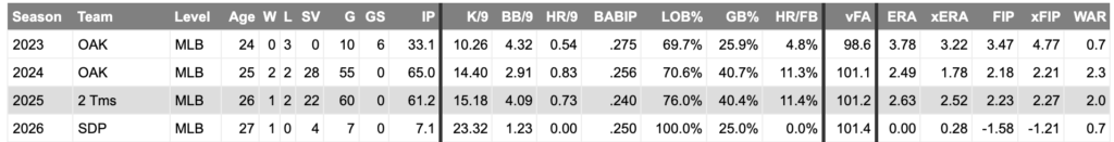 Ryan Helsley looks to have regained his confidence in his new Orioles’ uniform. After posting a 4.50 ERA in 2025, Helsley has converted all 5 of his save opportunities in 2026, boasting a 12.79 K/9, as well as a 2.84 ERA and 2.24 FIP. Sure, the walks have been a major issue (5.68 BB/9), but an elevated walk rate (3.75 BB/9 career) has never stopped Helsley from posting high-end numbers (2.95 career ERA, 3.27 career FIP) throughout his time in MLB.