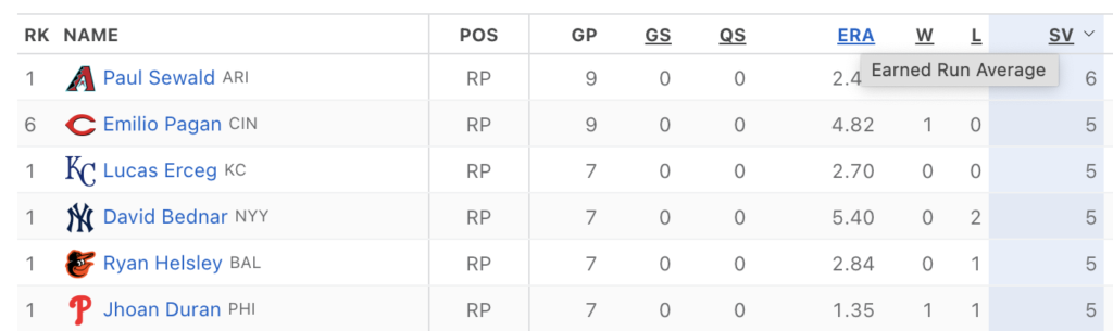Sewald is 6/6 in save opportunities this year, striking out 10 batters over 9 appearances and walking 0. The wily veteran may not have swing-and-miss stuff, but he can locate it with the best of them.