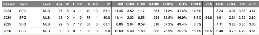 A priority Week 4 add, Riley O’Brien appears unhittable to start the 2026 season. Across 9 appearances, O’Brien has yet to issue a walk and sports a cool 0.00 ERA, as well as a 1.43 xERA, 1.63 FIP, and 2.12xFIP.